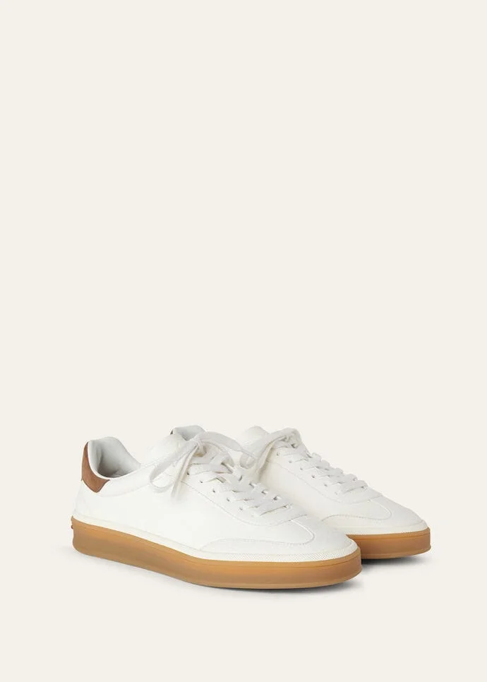 Step into timeless style with our new deerskin tennis shoe, featuring an ultra-low profile for year-round wear. The caramel cup sole creates an effortlessly attractive color combination, making it the perfect blend of functionality and subdued, exclusive style. The ideal footwear choice for city dressing. Product details Suede details on the toe echo the elongated lines that define this modelPadding on the edge of the openingTongue customized with an embossed LP logoComposition: Upper: 100% Natural CalfskinSole: 100% Leather Made in Italy Product code: FAO1548