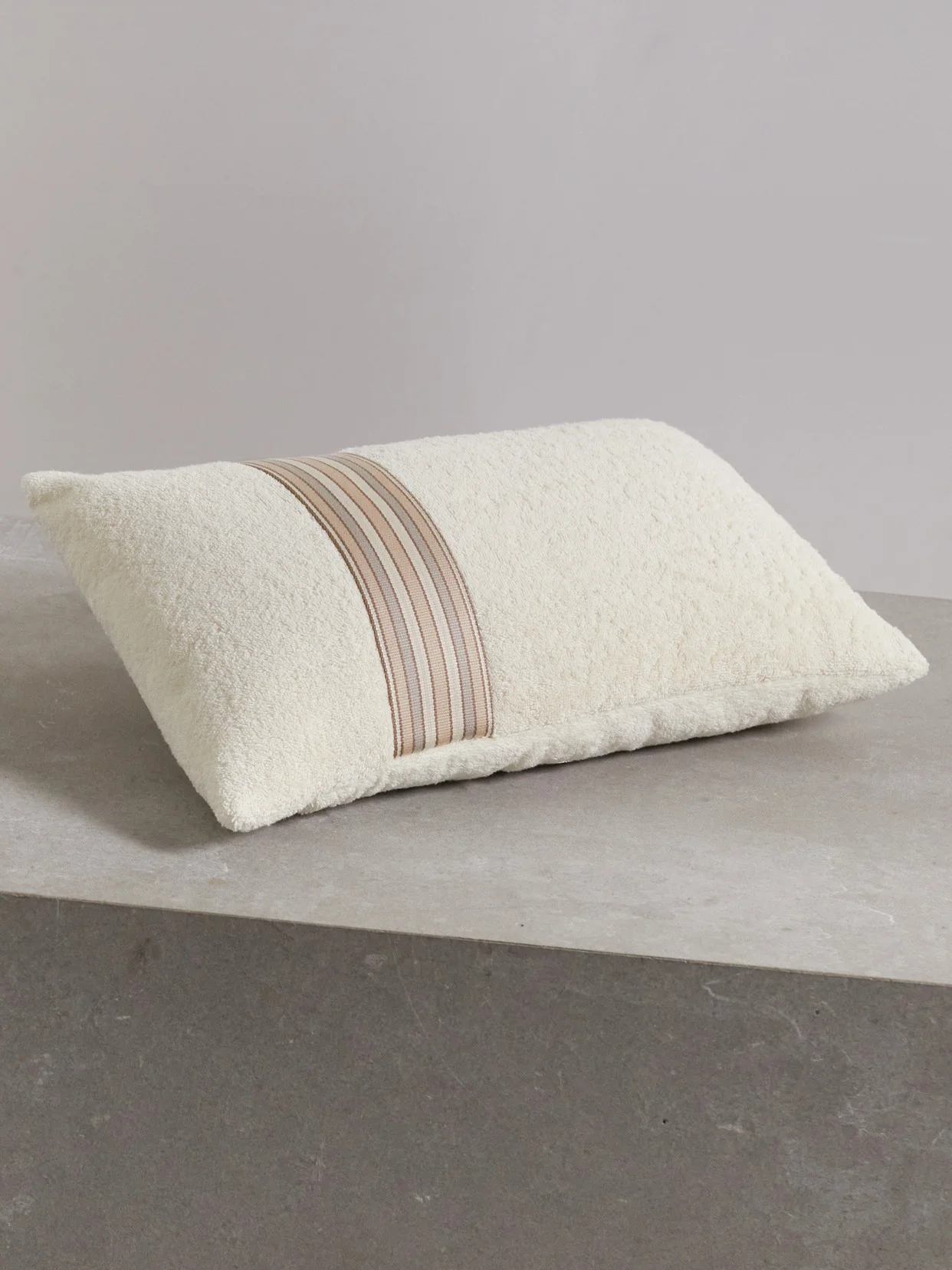 The Suitcase Striped Webbing-trimmed Cotton-terry Beach Pillow