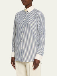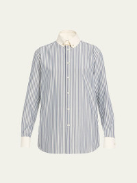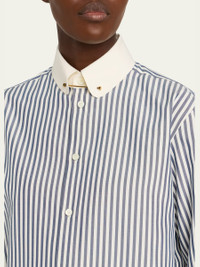Thea Collar-Pin Striped Silk Button-Down Shirt