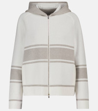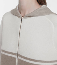 Loro Piana's Thompson striped hoodie proves the label's off-duty design doesn't compromise on signature elegance and superior fabrications. The reversible piece is made from soft cashmere exclusively sourced from baby Hircus goats – a process that has been finessed by the brand for over a decade. This neutral cream-white shade invites comfort. Product Details - Made in Italy - Material: 100% cashmere - Pockets: side slit pockets - Designer color name: Beige - Hood - Closure: zipped front - Care instructions: hand wash - Item number: P00514245 Size & Fit - True to size - Designed for a loose fit - Mid-weight material - Falls to the hip - The model seen in the picture is 178cm-5'10" and wearing a size IT 40