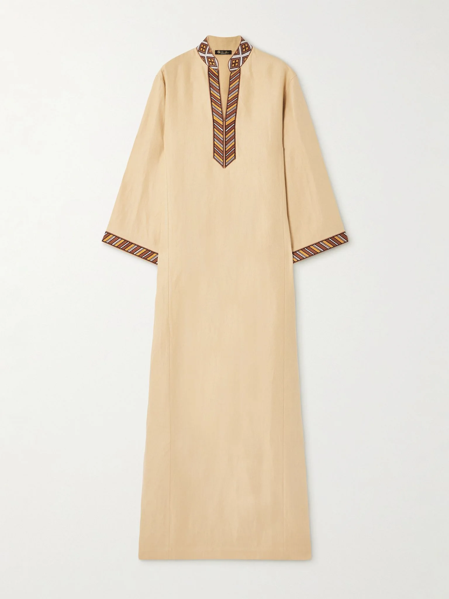 Loro Piana's 'Tilde' dress is cut for a relaxed fit from 'Antigua' crease-resistant linen, chosen for its elegant drape. It has a V-neckline embroidered with abstract geometric motifs and side splits. Size & Fit - Fits true to size, take your normal size - Designed for a relaxed fit - Particularly long in length - Lightweight, non-stretchy fabric - Model is 177cm/ 5'10" and is wearing an IT 40 Model measurements: - Bust: 80cm/ 31.5" - Waist: 60cm/ 23.5" - Hip: 89cm/ 35" Details & Care - Pastel-yellow linen - Slips on - 100% linen - Dry clean