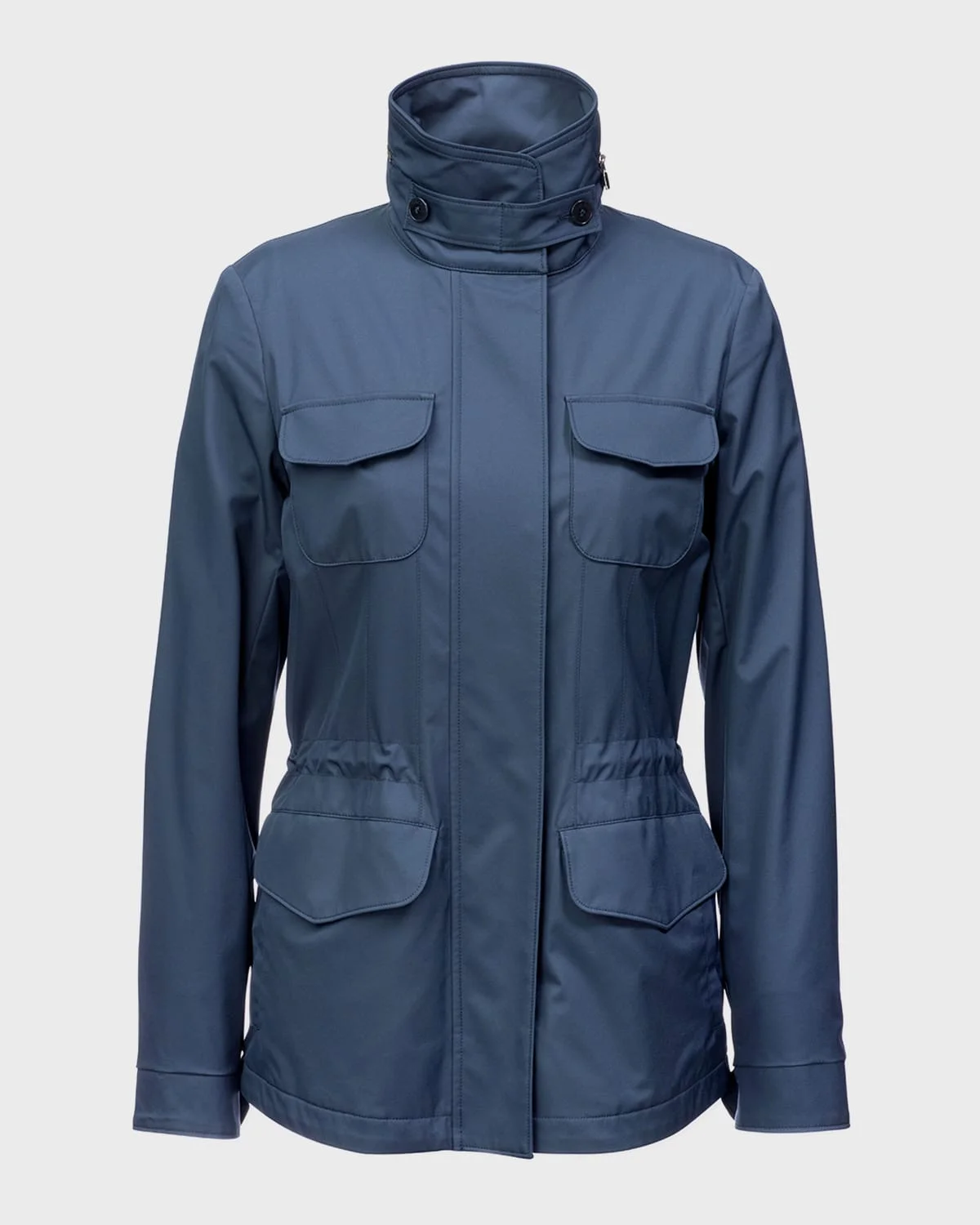 Loro Piana "Traveler" jacket in lightweight, crease-resistant Windmate® microfiber and cashmere blend.Storm System® treatment for a waterproof, wind-resistant finish.Approx. 26.8"L from shoulder to hem.Spread collar with packable drawstring hood.Zip front with concealed snap-over placket.Internal drawstring waist.Four front flap pockets.Nylon; lining, cashmere.Dry clean.Made in Italy.