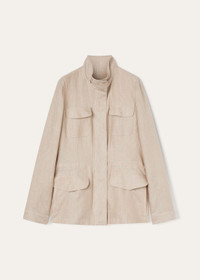 A versatile jacket that is a feminine take on the Traveller, Loro Piana's iconic men's jacket designed for travel. Crafted from linen, it is hip length with a straight cut and waist drawstring. Perfect with casual looks, slipped over a t-shirt and shorts, cotton trousers or jeans. Product details Dual fastening, with press studs and zip concealed by a flap Composition: 100% linen Made in Italy Product code: FAF6362