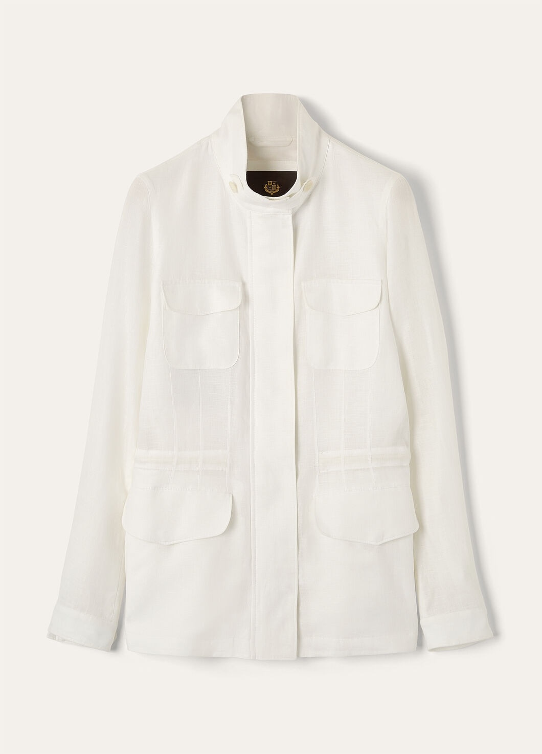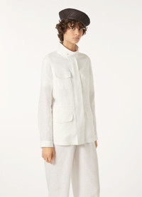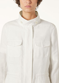 A versatile jacket that is a feminine take on the Traveller, Loro Piana's iconic men's jacket designed for travel. Crafted from linen, it is hip length with a straight cut and waist drawstring. Perfect with casual looks, slipped over a t-shirt and shorts, cotton trousers or jeans. Product details Dual fastening, with press studs and zip concealed by a flap Composition: 100% linen Model wears an IT 36 Model measures: height 5′ 9″/ 175cm, bust 30.7″/ 78cm, waist 23.2″/ 59cm, hips 34.6″/ 88cm. Made in Italy Product code: FAF6362