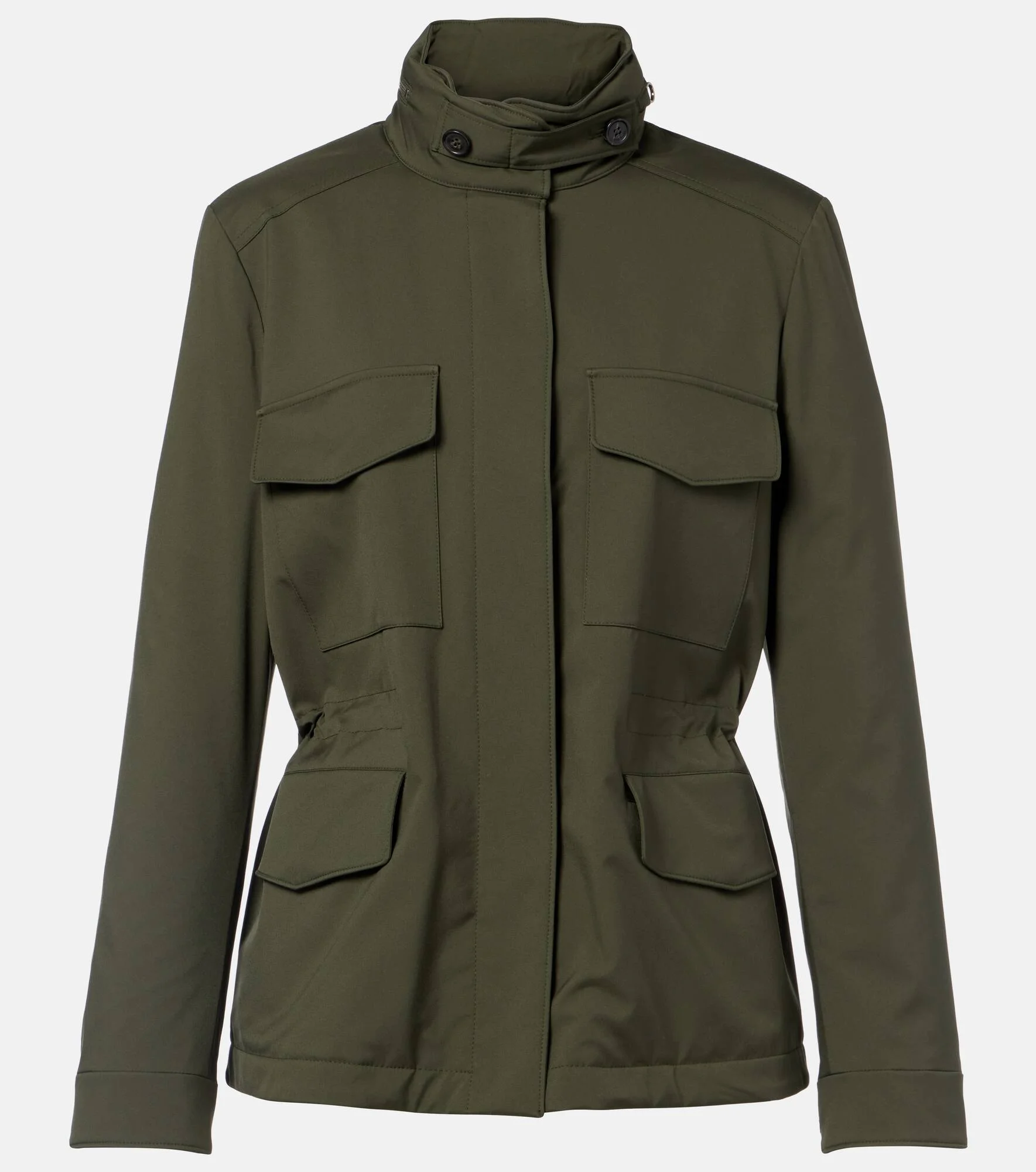 The Traveller Mini field jacket is shaped into a classic silhouette with multiple flap pockets, a concealable hood, and stand collar. This style is made with Loro Piana's Storm System® treatment for a waterproof and wind-resistant finish. Product Details - Material: 100% polyamide - Care instructions: dry clean - Made in Italy - Color: green - Designer color name: Ireland Green - Coating: 100% polyurethane - Lining: 100% cashmere - Sleeve lining: 100% polyamide - Pocket lining: 85% cotton, 15% cashmere - Hood: 100% polyamide - Closure: two-way zipped front with snap-button fastenings - Pockets: snap-buttoned pockets, flap chest pockets, internal pocket - Elasticated drawstring waist - Concealed hood - Item number: P01130428 Size & Fit - Fits small to size - we recommend trying one size larger - Straight fit - Non-stretchy fabric - Falls below the hip - The model seen in the picture is 178cm-5'10" and wearing a size IT 42