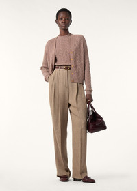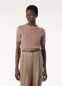 In a delicate dance of softness and strength, the Treccia crewneck combines the finest materials with intricate craftsmanship. Knitted from a baby cashmere yarn, this short-sleeved sweater is decorated with an intricate cable pattern for visual texture. Designed with a regular fit, it sits close to the body, making it a versatile addition to your wardrobe. Product details Ribbed neckline Ribbed cuffs and hem Plain-knit sleeves Regular shoulders Composition: 100% Baby Cashmere Made in Italy Product code: FAO3399