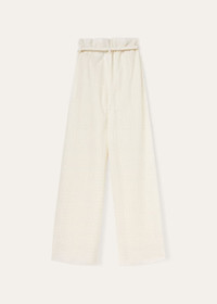 In the luxury of letting go, these Tristin pants become a garment of inner warmth, uncomplicated by all that can fray serenity. They billow in beautifully woven cotton, silk and wool - gathered at the waist for a heightened drape, yet effortless to wear. Glide through the day and night in sophisticated style with this piece. Product details Pockets lined in silk Composition: 77% Cotton, 15% Viscose, 3% Virgin Wool, 2% Other Fibers, 2% Technical Fabric, 1% Silk Made in Italy Product Code: FAO0439