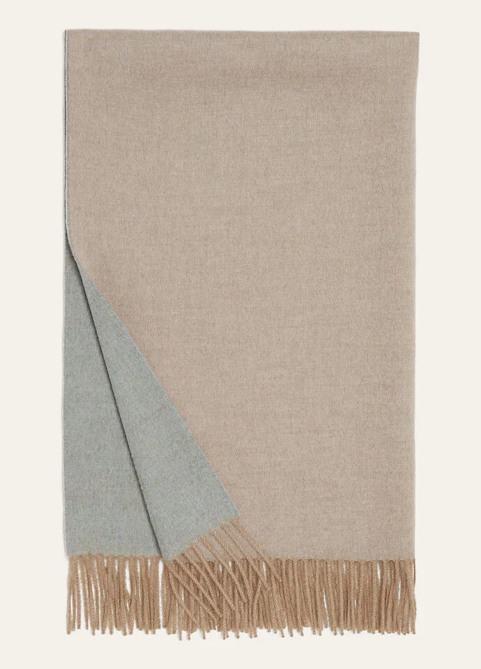 In the grand tapestry of the collection, accessories are the golden threads that weave together past and present, each subtly symbolizing the brand's century-long commitment to uncompromising elegance. The classic two-tone stole, now in sumptuous pure cashmere, drapes elegantly over your shoulders. The contrasting colors on each side and the uniquely colored fringes along the short edges create a versatile accessory to lift any ensemble. Product details Twisted fringes on the short sides Splits along the long edges Size: 200 x 70 cm Composition: 100% Cashmere Made in Italy Product code: FAO4316