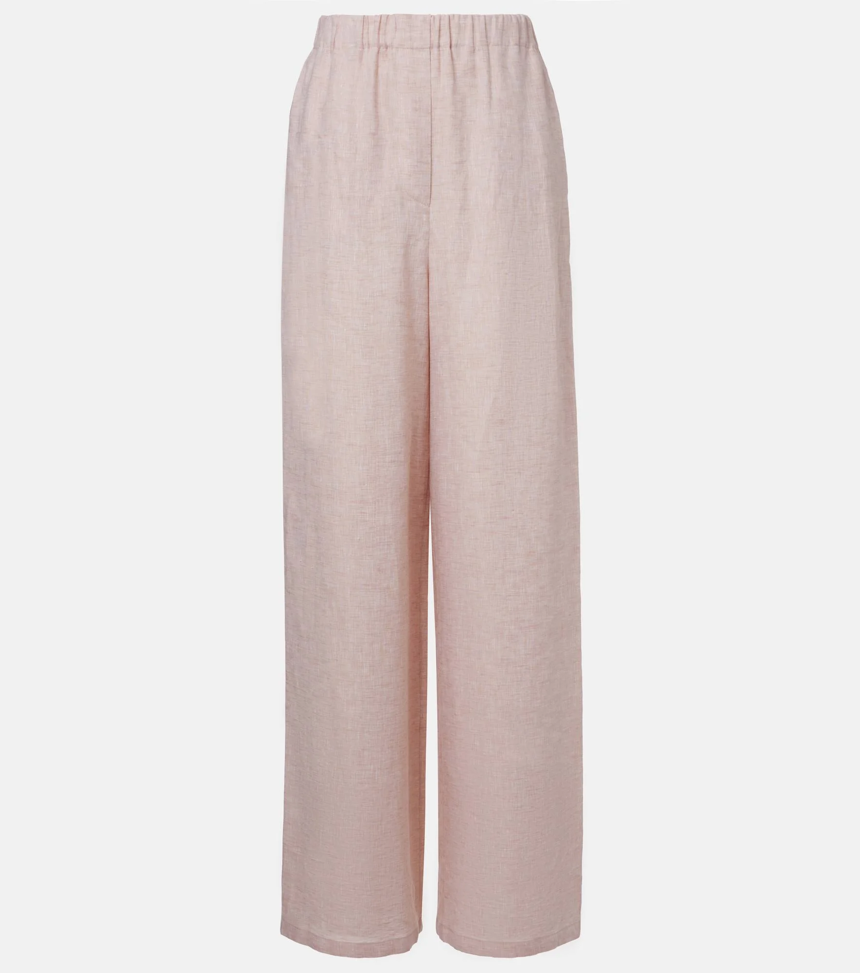 Breathe a fresh breeze into your warm-weather wardrobe with the Valerio pants from Loro Piana. Cut to a fluid wide-leg silhouette, this style flows effortlessly with every step. Product Details - Material: 100% linen - Care instructions: machine wash at 30 degrees - Made in Italy - Designer color name: Ceramic Rose - Item color: pink - Pockets: side slit pockets - Fit: wide-leg - Elasticated waistband - Item number: P01081835 Size & Fit - True to size - Elasticated waist - Non-stretchy fabric - Wide-leg - The model seen in the picture is 178cm-5'10" and wearing a size IT 40