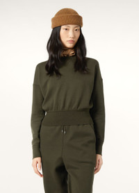 Fitted in design, with a woven V-neck, the Viera sweatshirt emblematizes the Maison’s casual refinement. It’s crafted in double Luxury Fleece – an elevated blend which sees the outer rendered in soft cotton and sumptuous Cashmere, and the inside in pure silk jersey. The lining is both fluid and matte and feels sensorial against the skin, creating a sophisticated finish. Product details Crewneck with V-stitch Ribbed cuffs Long sleeves Boxy fit Ribbed hem Composition: 51% Cotton, 40% Silk Model wears an IT S Model measures: height 5′ 10″/ 179cm, bust 30.3″/ 77cm, waist 23.2″/ 59cm, hips 35.0″/ 89cm, shoes 15.4″/ 39cm. Product code: FAP2181