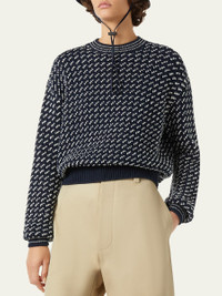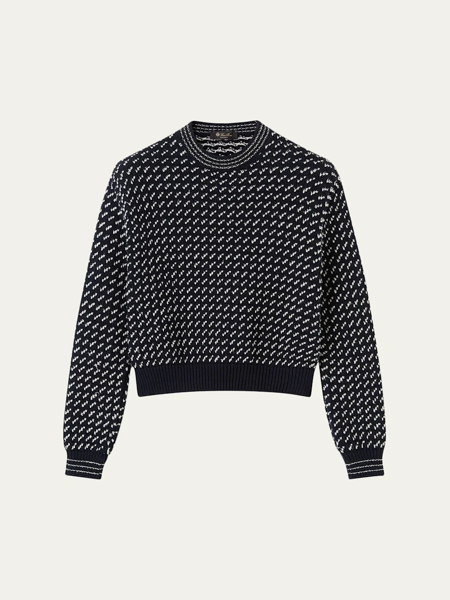 Knit from cotton, the "Yawl" sweater by Loro Piana features a graphic design Crew neckline Dropped shoulders Long sleeves Relaxed fit Ribbed cuffs and hem Pullover style Cotton Dry clean Made in Italy