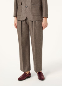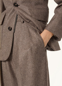 Influenced by the serene beauty of the Bamboo collection, these sleek classic pants embody understated sophistication. Featuring a straight cut, pleats at the waist and a refined pressed crease, these pants are made from exclusive Wish Cash flannel. The fabric, which has been fulled to achieve the typical look of brushed flannel, has an inviting texture. With a slightly wide leg, these comfortable pants will effortlessly complete a variety of ensembles. Product details Horn buttons Pockets lined in silk Composition: 73% Virgin Wool, 7% Cashmere Made in Italy Product code: FAN6888