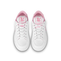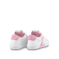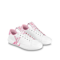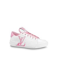 Made with 90% sustainable materials, the Charlie sneaker is Louis Vuitton's first eco-designed shoe. Pastel colors bring a feminine touch to this model, which features 100% recycled polyester laces and an embroidered LV Initials signature on the side. The back is trimmed with Monogram textile made from recycled polyester. Detailed Features - Rose Clair Pink - Mix of recycled and bio-based sustainable materials - Recycled polyester laces - Recycled rubber outsole - LV Initials on the side - LV upcycling logo on the tongue - Louis and Vuitton signatures on the tongue - Monogram textile made with recycled polyester on the back - Louis Vuitton signature on the outsole - Made in Italy
