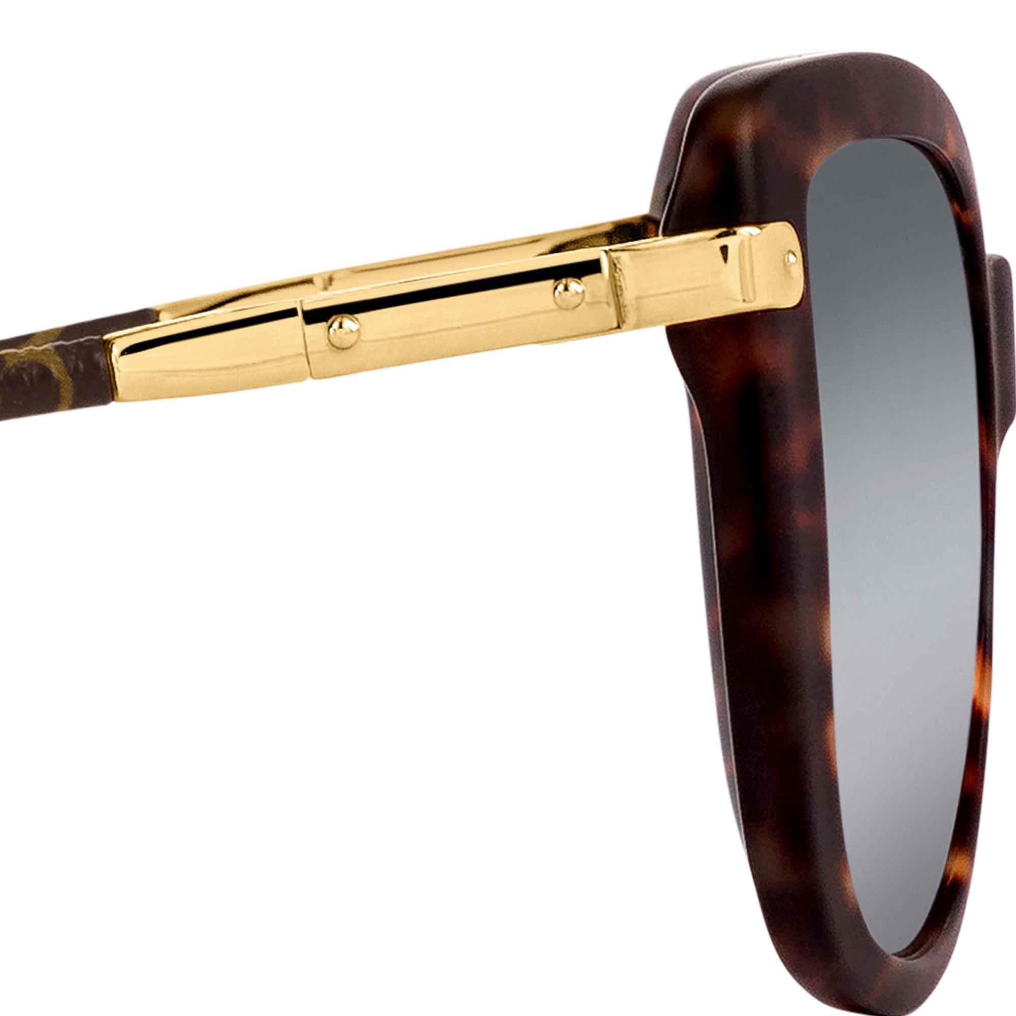 These Charlotte Sunglasses embody feminine style. They’re also supremely practical thanks to an innovative hinge system that means they can be easily folded flat and carried in a bag or clutch. Detailed Features - Acetate and iconic Monogram canvas on temples - Engraved Louis Vuitton initials logo on lens - Use of studs throughout reminiscent of classic Louis Vuitton trunks - Flash mirrored lenses on dark tortoise variant - UV Protection:100% - Filter Category:3