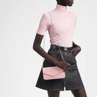 Louis Vuitton's emblematic Epi leather complements the simple yet elegant design of the Pochette Félicie. This envelope-style pouch, which contains two removable pockets, adapts to every occasion. Thanks to a removable silver-tone chain, it also offers a variety of carry options: on the shoulder, across the body or in the hand. Detailed Features - Rose Ballerine Pink - Epi grained cowhide leather - Cowhide-leather trim - Textile lining - Silver-color hardware - Press-stud closure - Large compartment - Removable zipped pocket - Removable flat pocket with 8 card slots - Inside flat pocket - Chain:Removable - Chain drop: 20.9 inches - The reference is either made in France, Spain, Italy or in the US. Length: 8.3 inches Height: 4.7 inches Width: 1.2 inches