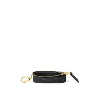Crafted from supple Monogram Empreinte leather, which is embossed with Louis Vuitton's signature Monogram pattern, the Key Pouch combines elegance and practicality. More than a key holder, it can also carry cash and cards thanks to its secure zip closure. Its hook and chain enable it to be attached to a bag or belt. Detailed Features - Black - Monogram Empreinte embossed supple grained cowhide leather - Cowhide-leather lining - Gold-color hardware - Zip closure - Key ring - Chain with hook - This reference is either Made in France, Spain, Italy or in the US. Length: 4.7 inches Height: 2.8 inches Width: 0.6 inches