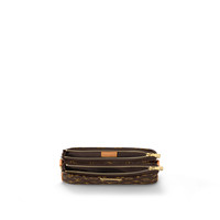 The Liv pochette in Monogram canvas is designed to fit snugly under the arm. It comes with a detachable gold-tone chain and a removable, adjustable double strap in Louis Vuitton's emblematic natural cowhide leather. A secure, double-zip closure and an engraved, gold-tone plaque finish this stylish piece. Length: 9.6 inches Height: 5.3 inches Width: 2.6 inches - Monogram coated canvas - Natural cowhide-leather trim - Textile lining - Gold-color hardware - Double-zip closure - Central pocket - Strap:Removable, adjustable - Strap drop:11.4 inches - Strap drop max:21.3 inches - Chain:Removable - Chain drop:11.4 inches - Chain drop max:21.3 inches This reference is either Made in France, Spain, Italy or in the US.