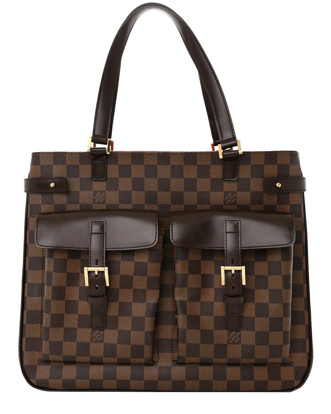 - About the brand: Exceptional luxury staples, crafted to perfection. - This is an authentic, pre-loved piece. This item is in excellent condition, but may show slight signs of wear. This item shows the item is in excellent vintage condition. Minor discolorations and scratches may be present in less obvious areas such as corners, but there are no major scuffs, holes or tears. - For more information on condition, please see our condition guide at the bottom - Uzes in Brown Damier Ebene Coated Canvas - Measurements: 4.3in long x 13.8in wide x 11.3in high; 7.8in handle; 7.5in strap - Please note: All measurements were taken by hand and are approximate; slight variations may occur. - Accompanied by dust bag - The Pre-Loved Condition Guide - Our products are 100% genuine. In some cases we purchase merchandise from trusted independent suppliers and not directly from the brand owner. In all cases we stand by the authenticity of every product sold on our site.