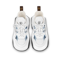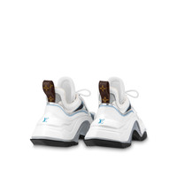This version of the LV Archlight 2.0 platform sneaker comes in calf leather and technical mesh, with flashes of color creating a sporty aesthetic. Inspired by the cult LV Archlight sneaker, this avant-garde model features a graphic rubber outsole and an oversized tongue, which is signed with a rubber LV Circle logo. A back loop in Monogram canvas completes this design. Detailed Features - Light Blue - Mix of materials - Oversized rubber outsole (5 cm / 2 inches) - LV Circle on the tongue - LV Initials on the outsole - Patent Monogram-canvas back loop - Made in Italy