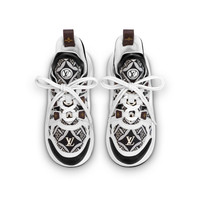 The LV Archlight sneaker is revisited in vintage-inspired Since 1854 jacquard textile, which combines Louis Vuitton symbols with the date the House was founded. This cult model is instantly identified by its springy, wave-shaped outsole in white rubber with the LV Circle logo. A back loop in Monogram canvas completes this design. Detailed Features - Grey - Jacquard textile - Oversized rubber outsole (5 cm / 2 inches) - LV Circle on the tongue and outsole - Patent Monogram-canvas back loop - Made in Italy