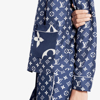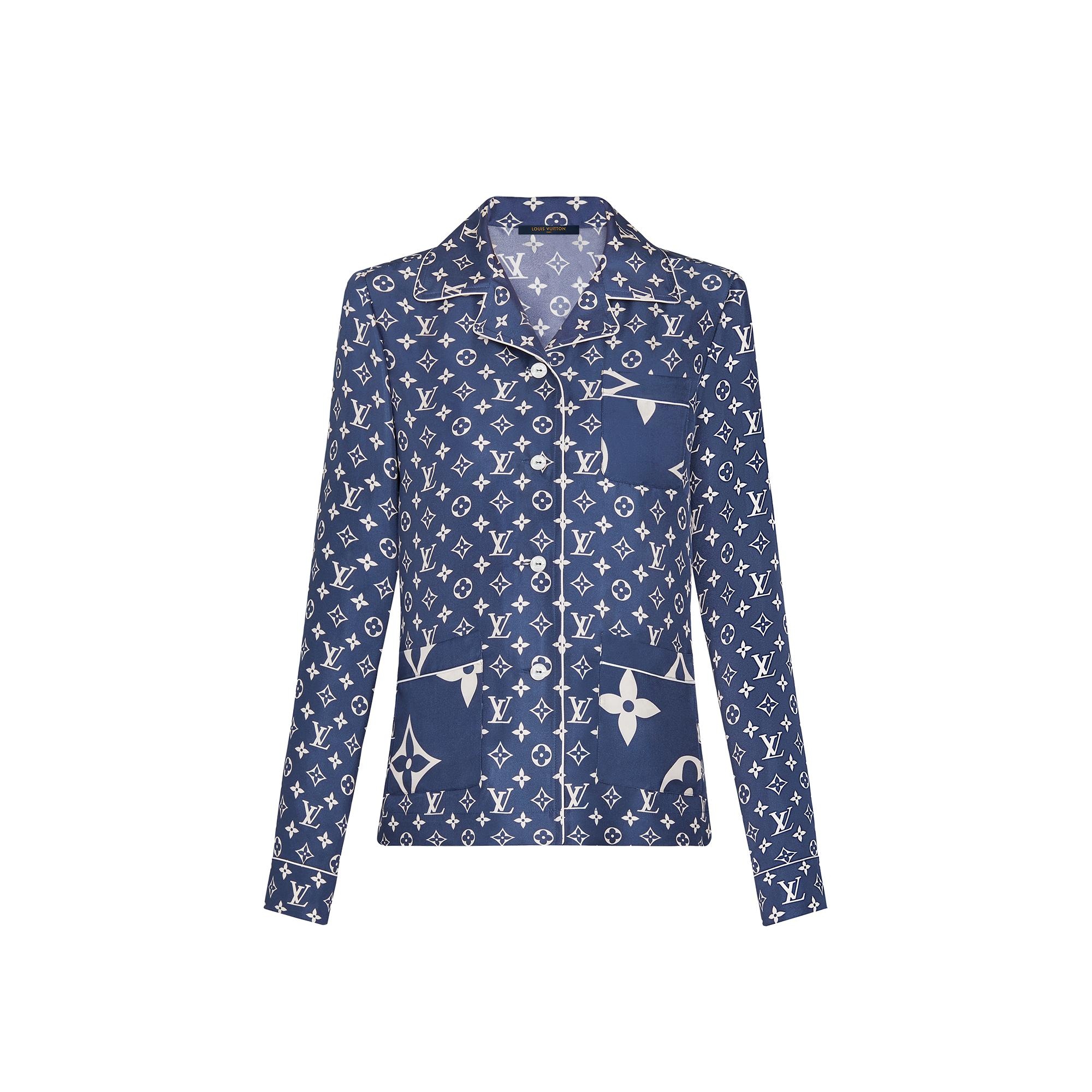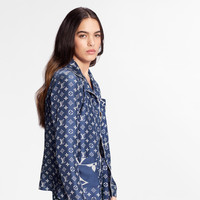Three patch pockets with oversized LV Monogram motifs pop against the iconic allover print on this pyjama shirt from the LV Escale capsule collection. Tailored in lightweight silk twill with white piping, this shirt pairs with matching pyjama pants or may be worn separately for a relaxed-chic look. Detailed Features - Outer material: 100% Silk - Indigo - Relaxed fit - Model wears size 36 - Model measurements : Bust 31'' / 79 cm, Height 5'9,5'' /177 cm, Waist 23'' / 58 cm, Hips 34'' / 86 cm - Made in Italy - Do not wash - Do not bleach - Do not tumble dry - Iron at a maximum sole-plate temperature of 110°C - Mild professional dry cleaning in hydrocarbons
