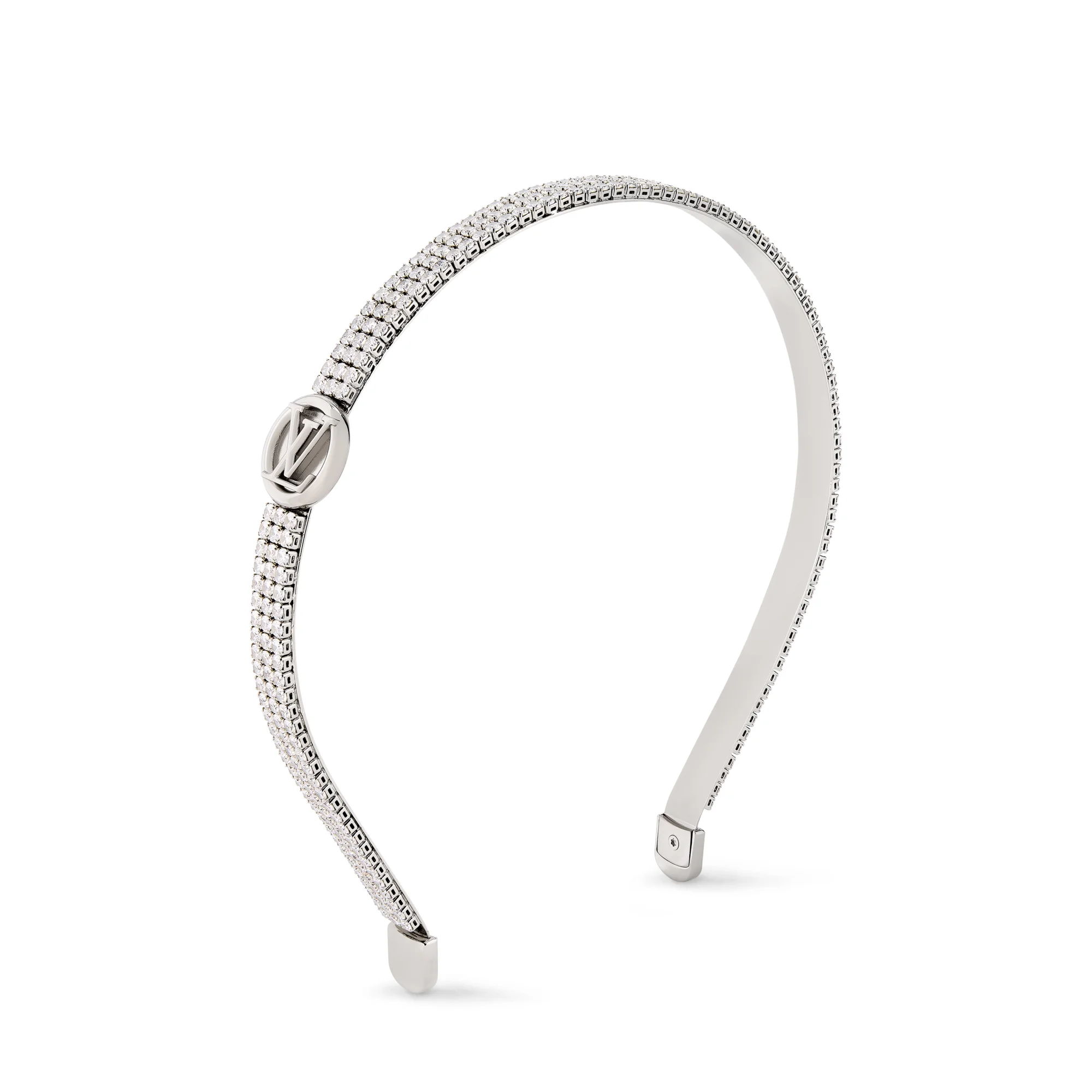 With its fine detailing and eye-catching signature style, the LV Iconic Strass headband adds a flourish of sophistication to a festive year-end look. Crafted in bright palladium-toned metal studded with dazzling rhinestones, it features an LV Circle emblem for a refined House touch. More than a hair accessory, this stunning headband is an elegant statement piece. - Palladium-toned metal - Rhinestones - Signature details