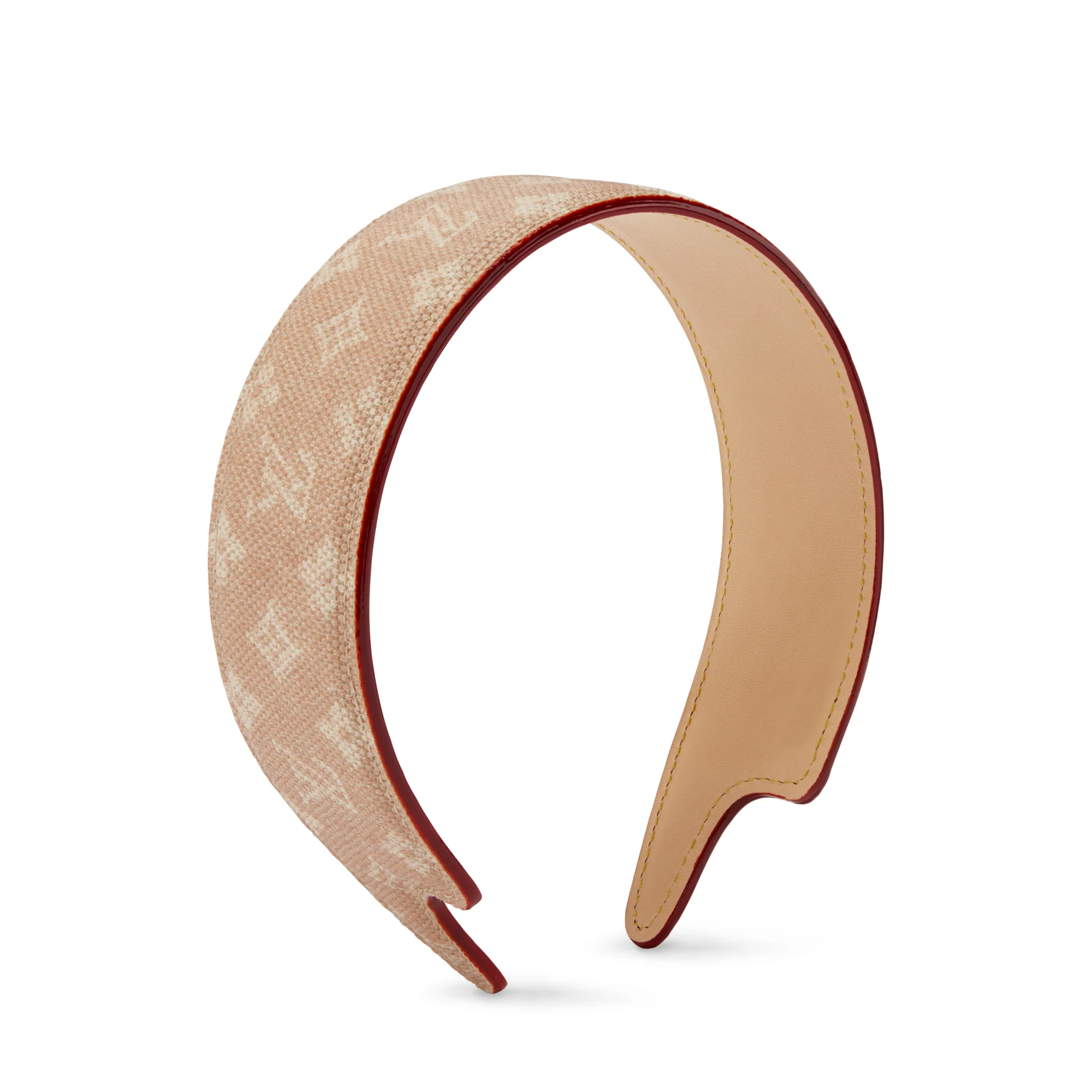 Unveiled at the Fall-Winter 2024 runway show, the elegant LV Outline headband now joins the Louis Vuitton Travels With Grace Coddington collection. Styled in classic Monogram canvas with a fine leather lining, this comfortable, practical accessory adapts easily to any look. Perfect for keeping the hair neatly in place all day long, it makes a sophisticated addition to every travel wardrobe. Length: 4.7 inches Height: 5.5 inches Width: 1.6 inches - Beige - Monogram coated canvas - Leather lining
