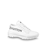 The LV Squad sneaker comes in cotton canvas with calf-leather trim. This chunky yet lightweight design is characterized by its elevated outsole in white rubber, which features contrasting textural effects and a pronounced tread. The LV Circle and Vuitton signatures are boldly emblazoned on the side. Detailed Features - White - Canvas and calf leather - Elevated, treaded rubber outsole - LV Circle on the tongue - LV Circle and Vuitton signature on the side - Louis Vuitton signature on the outsole - Made in Italy