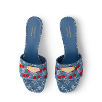 Refreshed with playful details from the celebratory second edition of the Louis Vuitton x Takashi Murakami collection, the Lily mule makes a sophisticated statement. Monogram denim introduces a casual allover signature, while embroidered cherry motifs add a burst of color to the upper and a striking cherry-shaped heel elevates the slip-on silhouette with a sculptural twist. A leather Louis Vuitton Paris patch completes the look with a final signature touch. - Monogram cherry denim - Leather signature patch - LV x TM heel, 5.5cm/2.2 inch
