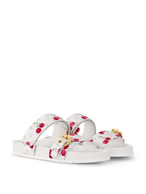 The Maya platform sandal makes a chic statement in casual Monogram denim that is playfully embellished with cherry embroidery from the re-edition of the iconic Louis Vuitton x Takashi Murakami collection. A gleaming golden buckle adds a polished detail to the strap, while the silhouette has a modern, graphic look with a chunky platform finished with a tonal rubber outsole. - Monogram cherry denim - Gold-toned hardware - Rubber outsole - Flatform, 5cm/2 inch - Made in Italy