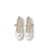 The Romy flat ballerina pump makes a playful statement in a multicolored Monogram motif from the re-edition of the Louis Vuitton x Murakami collection, which twists the House’s iconic signature with bold rainbow tones inspired by the artist’s go-to palette. Crafted from coated canvas with a supple leather outsole, they are lightweight and comfortable for everyday styling, fastened with a chic studded strap trimmed with an LV Twist accessory. - Multicolored - Monogram coated canvas - Leather outsole - Gold-toned hardware - Strap fastening - Signature accessory - Made in Italy - This style runs large. It is recommended to order a half-size smaller than usual. - Please note that the color placement on the Monogram motif may vary from a product to another