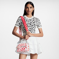 Created for the major new Louis Vuitton x Yayoi Kusama collection, the LVxYK Cluny Mini pays homage to the celebrated Japanese artist’s signature dots. Kusama has been obsessed with dotted patterns since experiencing a vision of dots as a child. For this compact clutch, her leitmotif appears in red on sumptuous white Epi cowhide. And the removable charm is shaped like a pumpkin, echoing another of the artist’s visual themes. Detailed Features - White and Red - Grained Epi cowhide leather with Infinity Dots print - Microfiber lining - Silver-color hardware - Inside LVxYK signature - Flap opening with magnetic closure - Inside zipped pocket - Inside flat pocket in printed leather - 4 protective metal base studs - Removable pumpkin-shaped charm - Strap:Removable, not adjustable - Strap drop: 21.7 inches - Handle:Single - This reference is either Made in France, Spain, Italy or in the US. Length: 7.9 inches Height: 6.3 inches Width: 3 inches