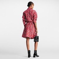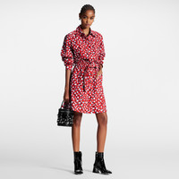 This smart shirt dress is vibrantly reimagined with a bold blend of signatures from the Louis Vuitton x Yayoi Kusama capsule. Tailored from lightweight cotton poplin in a graphic finish that combines the House’s iconic Monogram motif in fil coupé with a striking print of the artist’s playful Infinity Dots. Four flap pockets introduce a structured feel, while an integrated belt detail can be cinched to highlight the waistline. Detailed Features - Length : 102 cm / 40,2 inches - Main Material : 100% Cotton - Rouge Vif, Red and White - Regular fit - Made in Italy