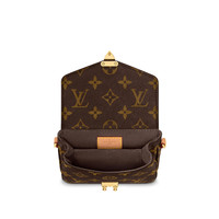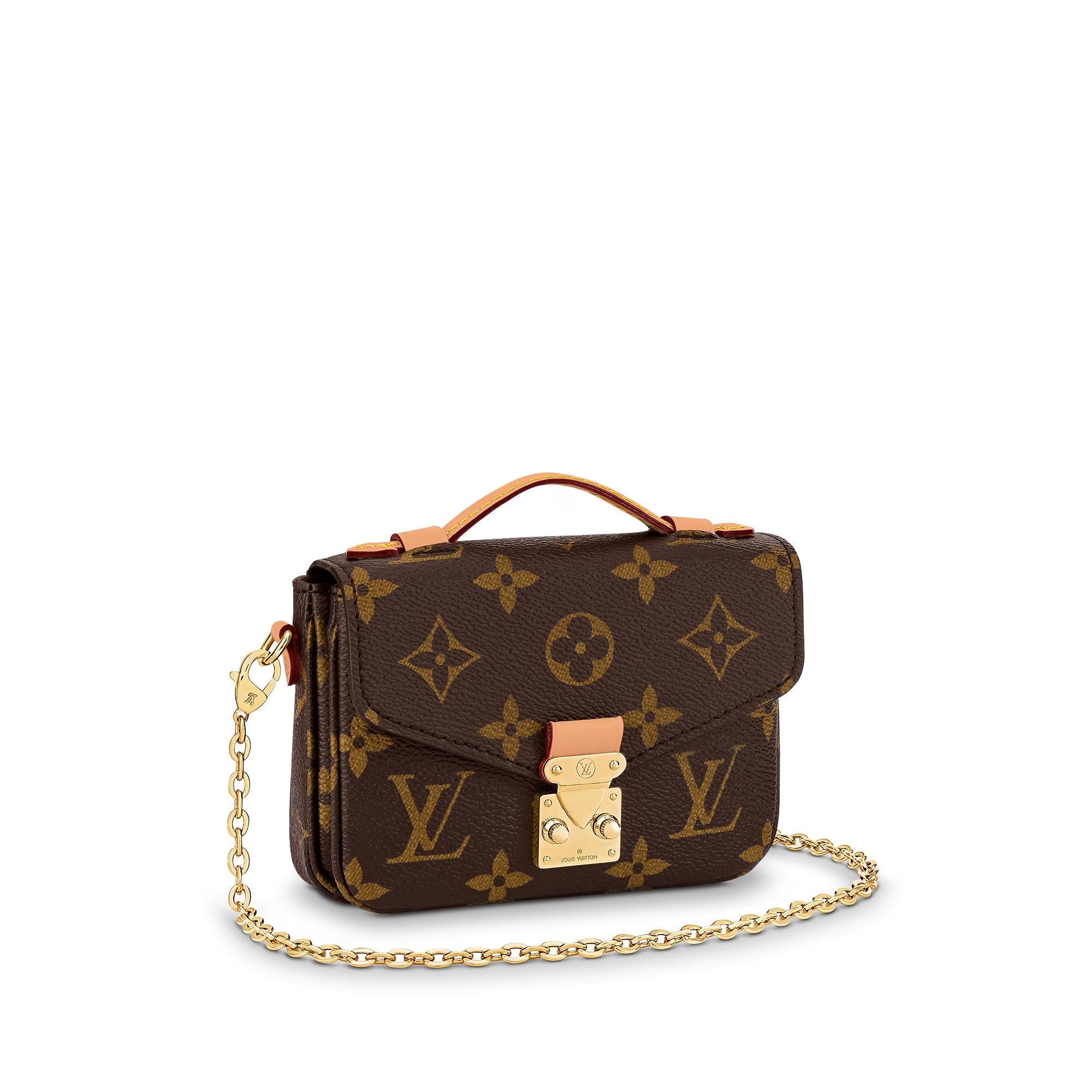 The Micro Métis in Monogram canvas is a miniature replica of the iconic Pochette Métis bag. This mini-satchel features carefully crafted details, notably a handle in Louis Vuitton's emblematic natural leather and an S-lock clasp inspired by the historic trunks. With its removable, gold-tone chain, it is a fashionable way to carry essentials for day or night. Detailed Features - Monogram coated canvas - Aged natural cowhide leather trim - Microfiber lining - Gold-color hardware - S-lock closure - 2 compartments - Chain:Removable - Chain drop: 18.0 inches - Handle:Single - This reference is either Made in France, Spain, Italy or in the US. Length: 5.5 inches Height: 4.3 inches Width: 1.4 inches