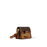 For Spring-Summer 2019 Nicolas Ghesquière unveils a new must-have: the Dauphine Mini handbag. This adorably compact model is crafted from Monogram and Monogram Reverse canvas, trimmed with cowhide-leather. The high-shine LV lock and leather smart strap add a modern twist to this signature piece, which is perfectly sized for day-to-evening wear. Detailed Features - Monogram and Monogram Reverse coated canvas - Cowhide-leather trim - Microfiber lining - Gold-color hardware - Magnetized front lock - 2 inside compartments - Inside back flat pocket - Strap:Removable, adjustable - Strap drop: 10.2 inches - Strap drop max: 19.3 inches - This reference is either Made in France, Spain, Italy or in the US. Length: 7.9 inches Height: 5.9 inches Width: 3.5 inches