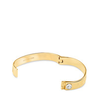 Engraved with the iconic Monogram pattern and featuring a single Louis Vuitton stud, this must-have cuff is an ideal piece to mix-and-match and accumulate. Detailed Features - Brass with gold finishing - Size S: 5.5cm x 1cm / Size M: 5.7cm x 1 cm - Engraved Louis Vuitton signature and Monogram pattern