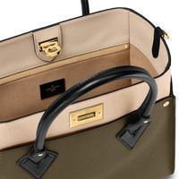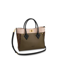 The On My Side MM tote bag is fashioned from an elegant combination of small-grained calf leather and emblematic Monogram canvas. The large outside pockets in contrasting canvas create a bag-in-a-bag look. The roomy interior can easily hold everything needed for a day at the office while the adjustable strap makes for practical cross-body carry. Detailed Features - Laurier Green/Toffee Latte Beige - Twist calfskin and Monogram coated canvas - Cowhide-leather trim - Microfiber lining - Gold-color hardware - Closure system with a lock - 2 outside pockets on the side - 2 outside pockets on the front and back (magnetic lock on the front one) - Inside zipped pocket - Double smartphone flat pockets - Strap:Removable, adjustable - Strap drop: 20.1 inches - Strap drop max: 22.0 inches - Handle:Double - The reference is either made in France, Spain, Italy or in the US. Length: 12 inches Height: 9.6 inches Width: 5.5 inches