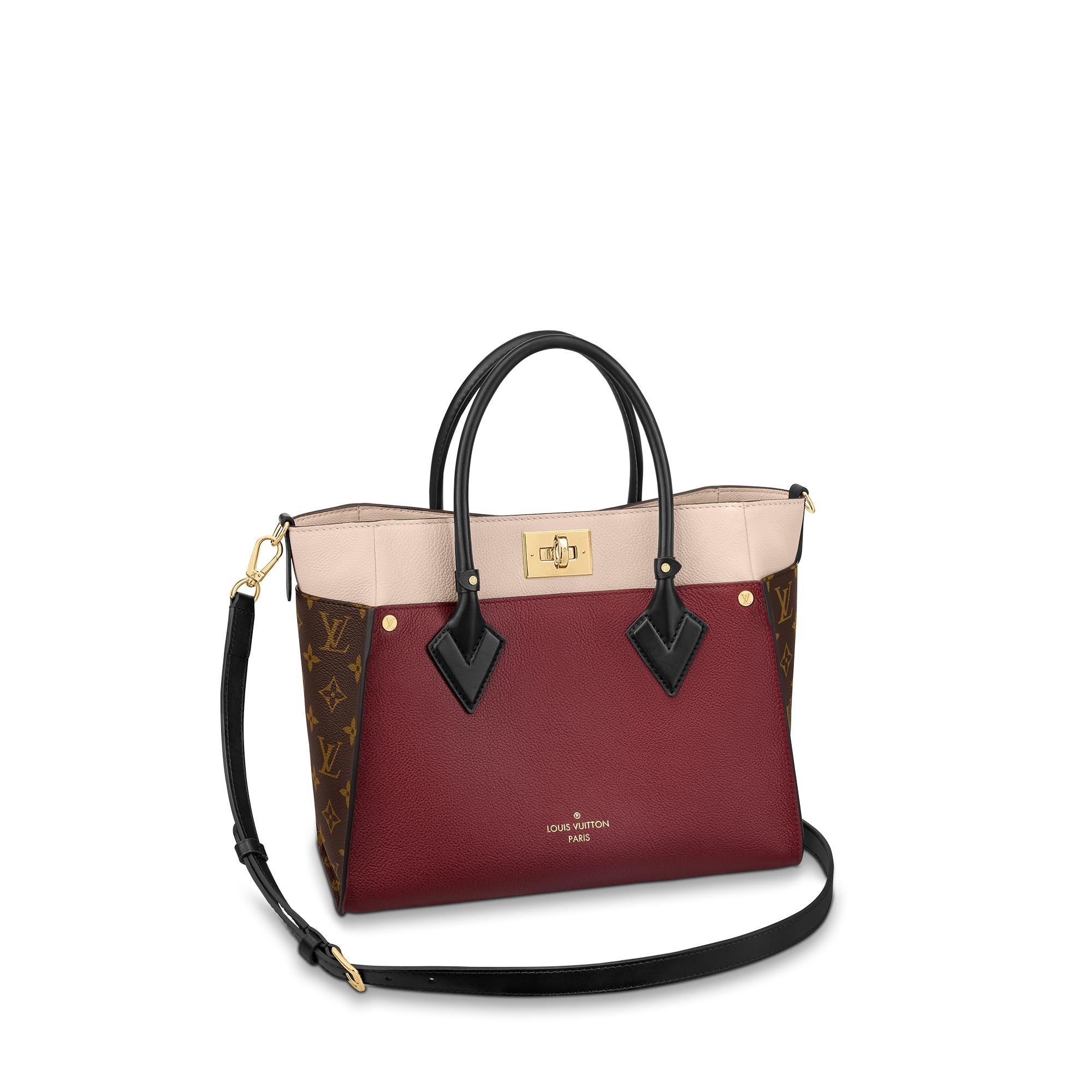 The On My Side MM tote bag is fashioned from an elegant combination of small-grained calf leather and emblematic Monogram canvas. The large outside pockets in contrasting canvas create a bag-in-a-bag look. The roomy interior can easily hold everything needed for a day at the office while the adjustable strap makes for practical cross-body carry. Detailed Features - Wine - Calfskin and Monogram coated canvas - Cowhide-leather trim - Microfiber lining - Gold-color hardware - Closure system with a lock - 2 outside pockets on the side - 2 outside pockets on the front and back (magnetic lock on the front one) - Inside zipped pocket - Double smartphone flat pockets - 4 protective metal bottom studs - Strap:Removable, adjustable - Strap drop: 20.1 inches - Strap drop max: 22.0 inches - Handle:Double - This reference is either Made in France, Spain, Italy or in the US. Length: 12 inches Height: 9.6 inches Width: 5.5 inches