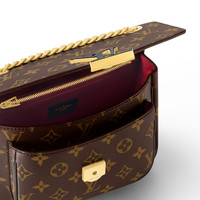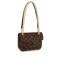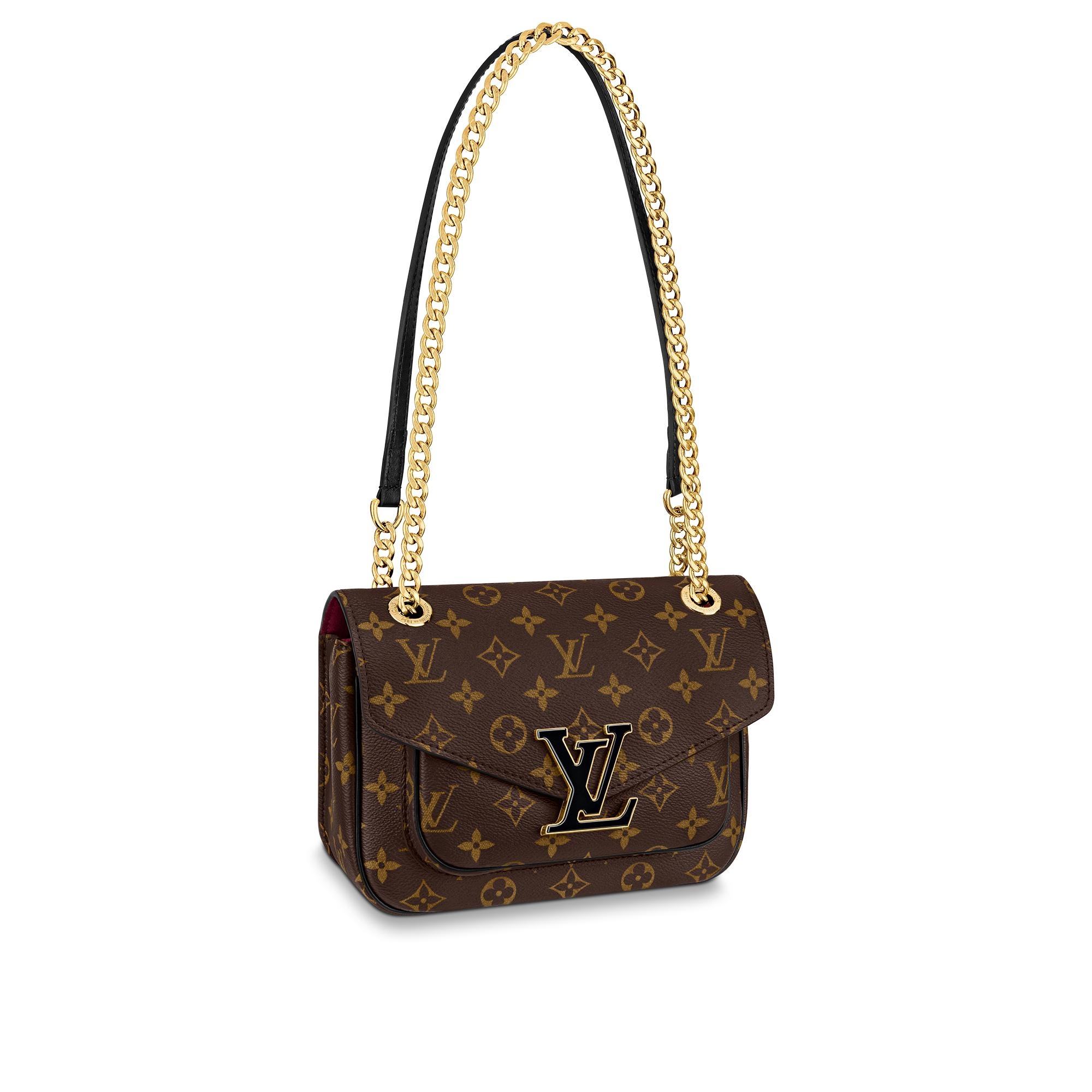 The compact Passy handbag in Monogram canvas with a sliding chain is the quintessence of casual chic. A functional day-to-evening bag, it has front and back outside pockets for quick access to essentials as well as two inside pockets. It closes with a magnetic LV lock in black resin with a gold-color outline. Detailed Features - Monogram coated canvas - Colored cowhide leather trim - Microfiber lining - Aged gold-color hardware - Front pocket - Zipped pocket inside - Hidden flat pocket inside - Back pocket - Magnetic closure - Leather piping - Chain:Sliding, not removable - Chain drop: 11.0 inches - Chain drop max: 20.1 inches - This reference is either Made in France, Spain, Italy or in the US. Length: 9.1 inches Height: 6.7 inches Width: 3.5 inches