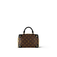 The distinctive Petite Malle Souple is a soft handbag steeped in the House history. The Monogram canvas, riveted leather corners, and leather name tag all evoke Louis Vuitton’s legacy as a trunk maker. A gold-color nautical chain and wide removable strap, with Louis Vuitton Malletier embroidered on it, bring up-to-the-minute style. Detailed Features - Black - Monogram coated canvas - Cowhide-leather trim - Textile lining - Gold-color hardware - Removable decorative metallic chain - Removable leather luggage tag - Inside zipped pocket - D-ring on strap - Strap:Removable, adjustable - Strap drop: 13.8 inches - Strap drop max: 20.5 inches - Chain:Removable - Chain drop: 8.7 inches - Handle:Single - This reference is either Made in France, Spain, Italy or in the US. Length: 7.9 inches Height: 5.5 inches Width: 3 inches