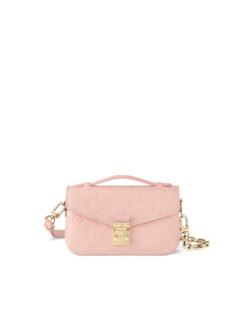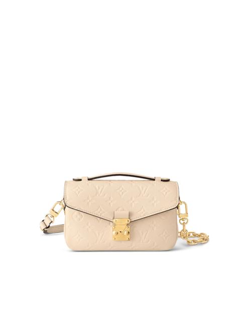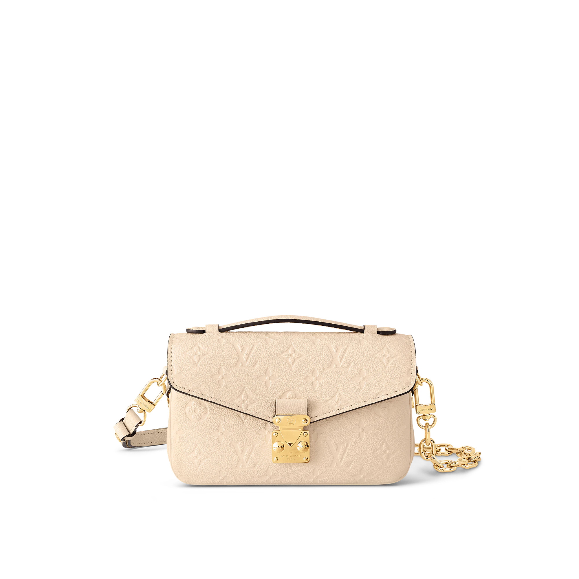 Made from embossed Monogram Empreinte leather, the Pochette Metis handbag blends signature House style and contemporary detailing. The on-trend East-West silhouette is highlighted by a heritage S-lock and removable short chain, both cast from gold-finish metal. With its well-organized interior and adjustable smart strap, this compact bag adapts perfectly to active lifestyles. Length: 8.5 inches Height: 5.3 inches Width: 2.4 inches - Creme Beige - Embossed supple, grained cowhide leather - Supple, grained cowhide-leather trim - Microfiber lining - Gold-color hardware - S-lock closure - Outside zipped pocket - 3 inside compartments - Inside middle zipped pocket - Strap:Removable, adjustable - Strap drop:11.4 inches - Strap drop max:17.7 inches - Chain:Removable - Chain drop:11.4 inches - Chain drop max:17.7 inches - Handle:Single This reference is either Made in France, Spain, Italy or in the US.
