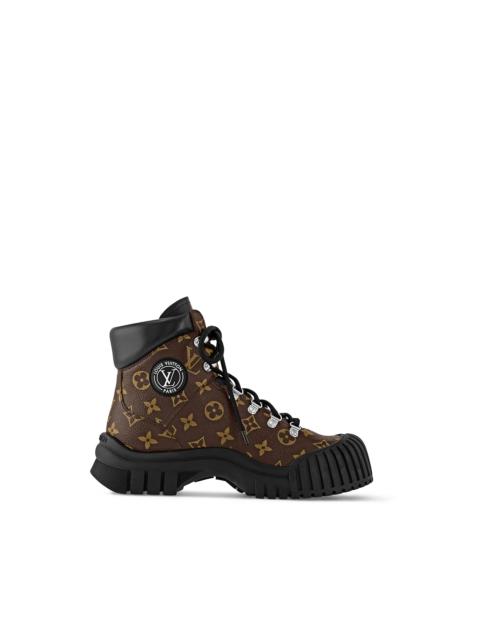 The Ruby flat ankle boot is Louis Vuitton's fashion-forward interpretation of a classic Chelsea boot. It comes in calf leather with a matte rubber finish for a modern look, while the chunky yet lightweight rubber outsole adds extra height. This go-anywhere style features the LV Circle logo on the upper and a Vuitton signature on the tread. Detailed Features - Black - Rubberized calf leather - Lambskin lining and footbed - Elastic side panels - Rubber outsole - LV Circle signature - Louis Vuitton signature on the outsole - Vuitton signature on the tread - Made in Italy