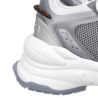 The Run 55 sneaker combines technical mesh, suede calf leather and soft rubber on its elaborately constructed upper. This model is notable for its lifted rubber outsole, which is designed for optimum bounce and comfort, as well as its numerous signature details. These include the LV Initials on the side and a back loop in Monogram canvas. Detailed Features - Gray - Mix of materials - Lifted rubber outsole - LV Circle on the tongue - Louis Vuitton-engraved eyelets - LV Initials on the front and side - Louis Vuitton signature, LV Initials and Monogram Flowers on the back - LV Initials and Monogram Flowers on the tread - Made in Italy