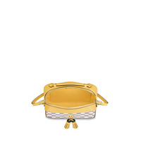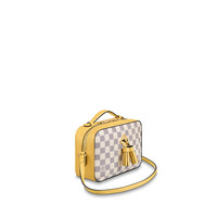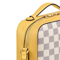 Damier Azur canvas pairs up with fresh pastel leather trim for a summery version of the most-wanted Saintonge handbag. The perfect partner for any beach-to-city look, this limited edition captures the spirit of the season with its fresh, playful vibe. The trendy top handle and long strap offer plenty of carry options for different attitudes. Detailed Features - Pineapple Yellow - Damier Azur coated canvas - Smooth cowhide trim - Cotton canvas lining - Gold-color hardware - Double zip closure - Flat inside pocket - Double tassels attached to metal plate - Strap:Not removable, adjustable - Strap drop: 22.0 inches - Strap drop max: 24.0 inches - Handle:Single - The reference is either made in France, Spain, Italy or in the US. Length: 8.7 inches Height: 6.3 inches Width: 3.1 inches