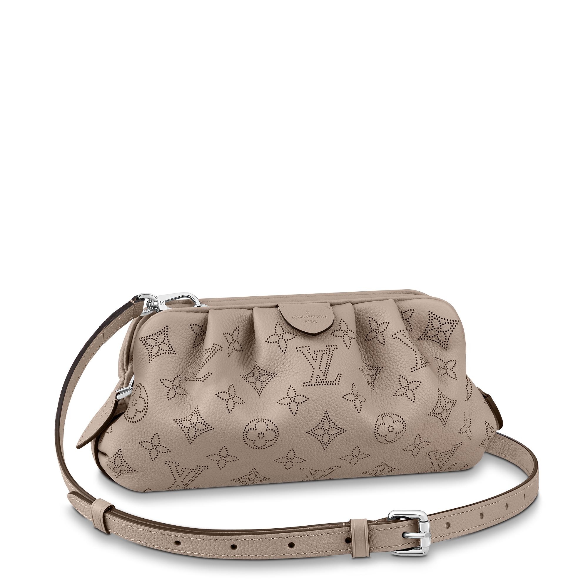 The Scala mini pouch has a soft, body-friendly shape inspired by the folds and pleats of drapery. It is crafted from supple Mahina calf leather, whose delicate perforations replicate Louis Vuitton's iconic Monogram pattern. Large enough to hold everyday essentials, it has a removable, adjustable strap, enabling it to be carried in several different ways. Detailed Features - Galet Gray - Mahina perforated calf leather - Calf-leather trim - Microfiber lining - Silver-color hardware - Zip closure - Inside flat pocket - Strap:Removable, adjustable - Strap drop: 18.5 inches - Strap drop max: 23.6 inches - This reference is either Made in France, Spain, Italy or in the US. Length: 9.1 inches Height: 4.9 inches Width: 2 inches