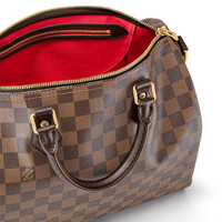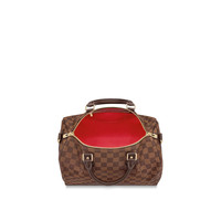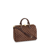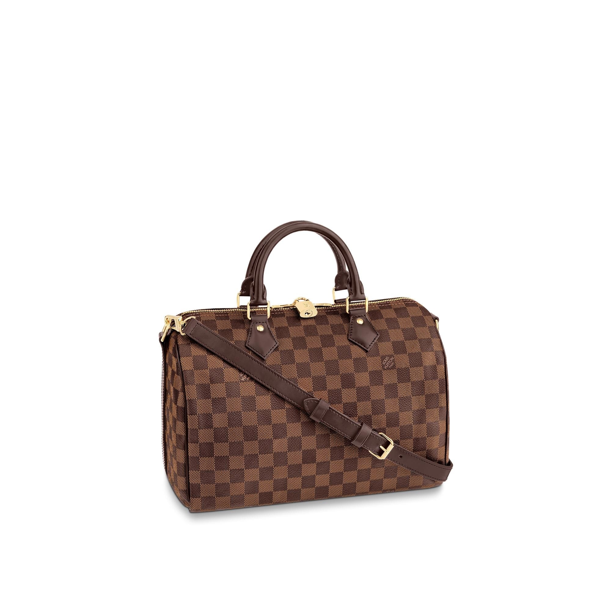 The Speedy Bandoulière 30 in elegant Damier Ebene canvas is an ideal city bag for every day. Originally created for travelers in the 1930s – the name refers to the era’s rapid transit – every feature of the Speedy’s design is iconic, from its unmistakable shape to the rolled leather handles, engraved padlock and detachable strap. Detailed Features - Damier Ebene coated canvas - Smooth cowhide-leather trim - Textile lining - Gold-color hardware - Double zip - Padlock - Inside flat pocket - Strap:Removable, adjustable - Strap drop: 18.9 inches - Strap drop max: 21.7 inches - Handle:Double - The reference is either made in France, Spain, Italy or in the US. Length: 11.8 inches Height: 8.3 inches Width: 6.7 inches