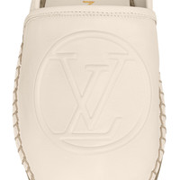 This seasonal edition of the Starboard flat espadrille is fashioned from extremely supple lambskin, which is embossed with an oversized LV Circle signature. This elevated interpretation of summer's classic espadrille features an authentic braided-rope sole. It is finished with an additional rubber outsole for greater durability. Detailed Features - Ivory White - Lamb leather - Rope sole - Rubber outsole - LV Circle signature - Made in Italy