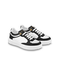 This seasonal edition of the Time Out sneaker comes in soft calf leather debossed with the mini Monogram pattern. One of the House's emblematic styles, this sneaker is notable for its elevated rubber outsole with a 3D Louis Vuitton signature. Other refined details, including engraved, gold-tone eyelets, complement this design. Detailed Features - Black - Monogram-debossed calf leather - Elevated, treaded rubber outsole - Louis Vuitton-engraved eyelets - Louis Vuitton signature on the tongue and outsole - Made in Italy