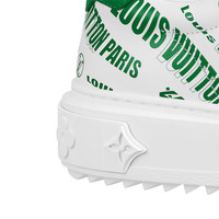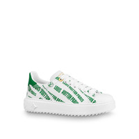 This edition of the emblematic Time Out sneaker was inspired by Louis Vuitton's Fall-Winter 2021 fashion show. Crafted from soft napa calf leather, it is printed with a new graphic signature. This model is characterized by its fashionable, elevated outsole. Detailed Features - Green - Printed calf leather - Elevated, treaded rubber outsole - Louis Vuitton-engraved eyelets - Louis Vuitton signature on the tongue - Monogram Flowers on the outsole - Made in Italy