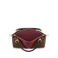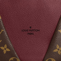 For Fall-Winter 2018, Monogram canvas is combined with grained leather in the V Tote MM handbag. It features a front panel of cowhide leather in a V shape, evocative of the initial of Vuitton, that hides a zipped front pocket. The gold-tone hardware and LV engraved handle-mount rings add shine to this elegant and functional bag. Detailed Features - Bordeaux Red/Black - Monogram coated canvas and grained calfskin exterior - Cowhide-leather trim - Microfiber lining - Gold-color hardware - Leather nametag - Double-zip closure - Diagonal hidden pocket on front - Double-smartphone pocket inside - Flat pocket inside - Strap:Removable, adjustable - Strap drop: 11.4 inches - Strap drop max: 13.4 inches - Handle:Double - The reference is either made in France, Spain, Italy or in the US. Length: 14.2 inches Height: 10.6 inches Width: 6.3 inches